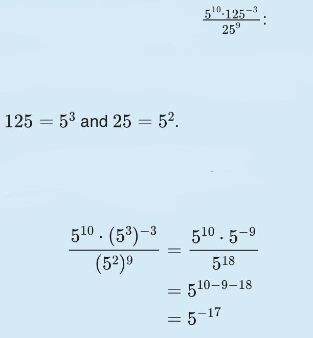 1) 5 в десятой степени • пять в девятой : пять в восемнадцатой = 5