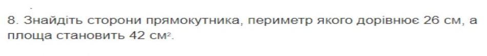 з цього можемо взяти, що якщо 26:3=13 - дві сторони прямокутника. Що потрібно перемножити, щоб вийшло 42? Методом підбору визначаємо, що 6+7=13, тож 6×7 = 42.