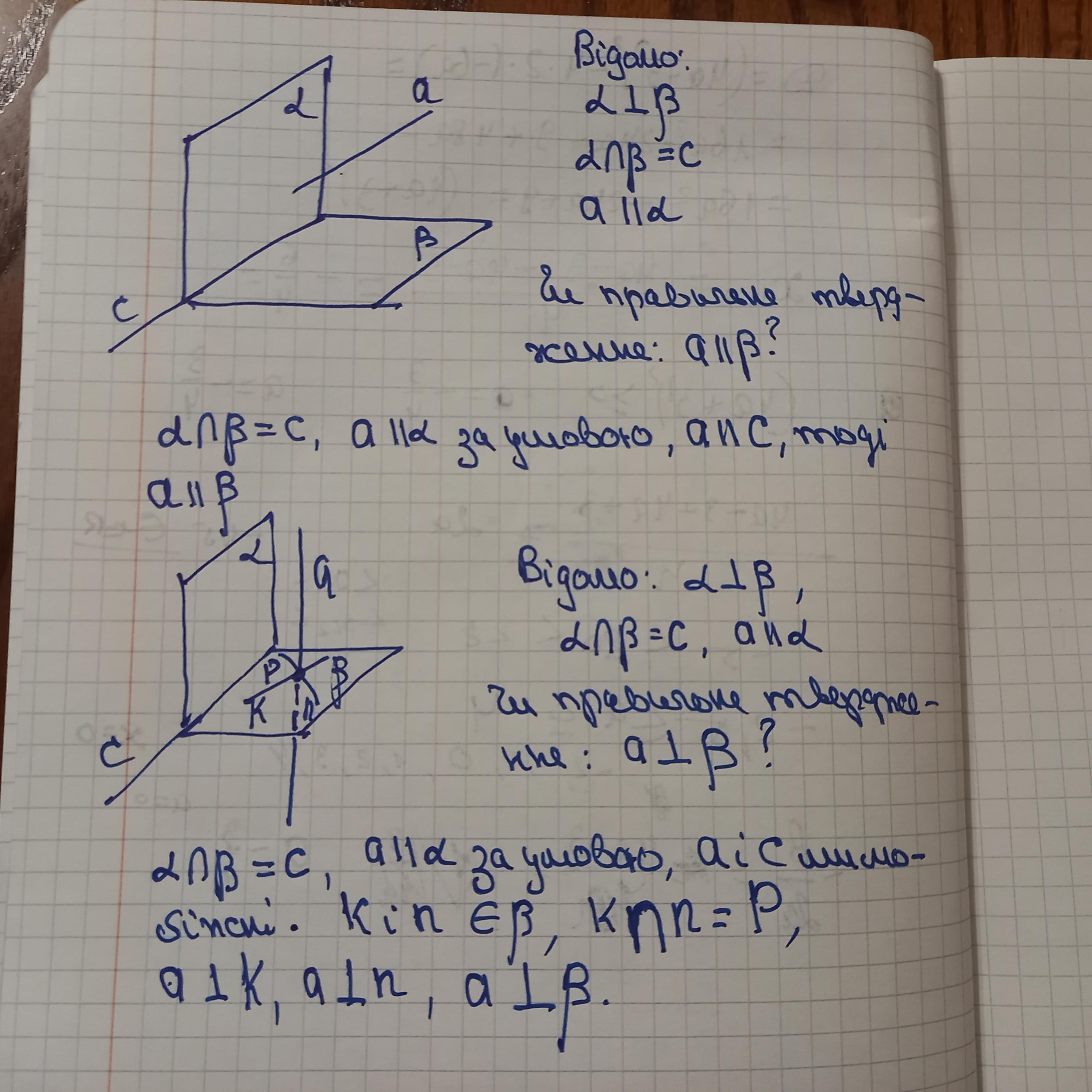 Чи правильне твердження? Якщо пряма паралельна одній із двохперпендикулярних площин, то вона може бути перпендикулярною другій площині
