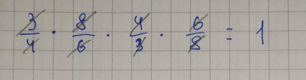 3/4 * 8/6 * 4/3 * 6/8 = 3*8*4*6/4*6*3*8 = 576/576=1