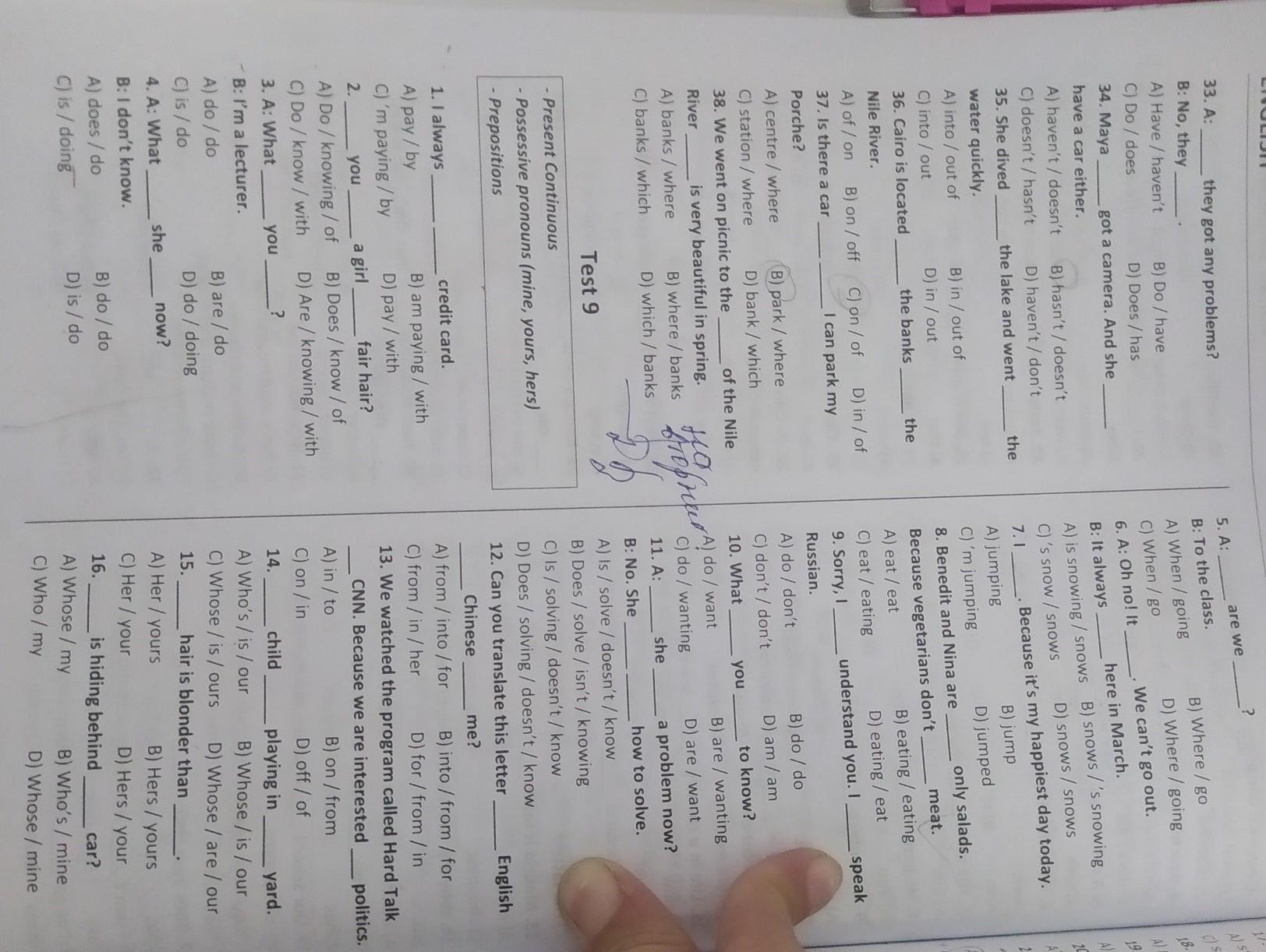 пожалуйста помогите только Test 9 от 1-до 16 , пожалуйста срочно нужно на завтра. Даю 20 баллов