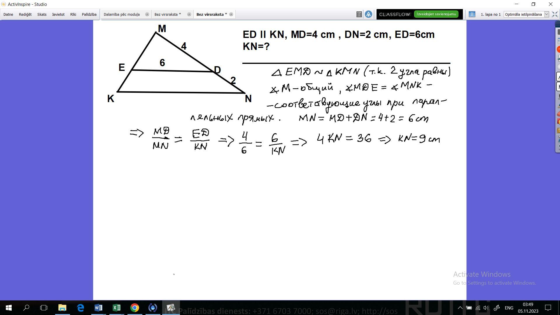 В треугольнике MNK проведен отрезок DE параллельный стороне NK, причем т. D лежит на стороне MN, а точка Е на стороне MK Найдите длину отрезка NK, если MD = 4 см, ND = 2