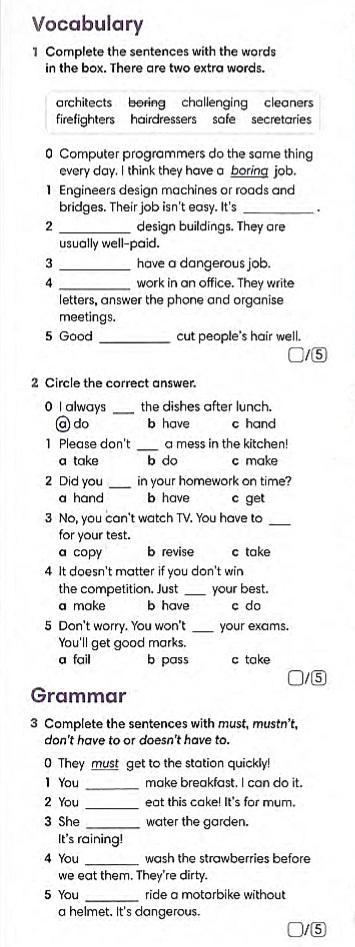 3. Complete the sentences with must, mustn't, don't have to or doesn't have to.