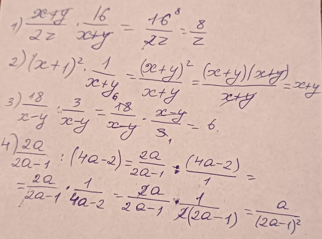 (х + у)/2z * 16/(x + y) = 1/z * 8/1 = 8/z