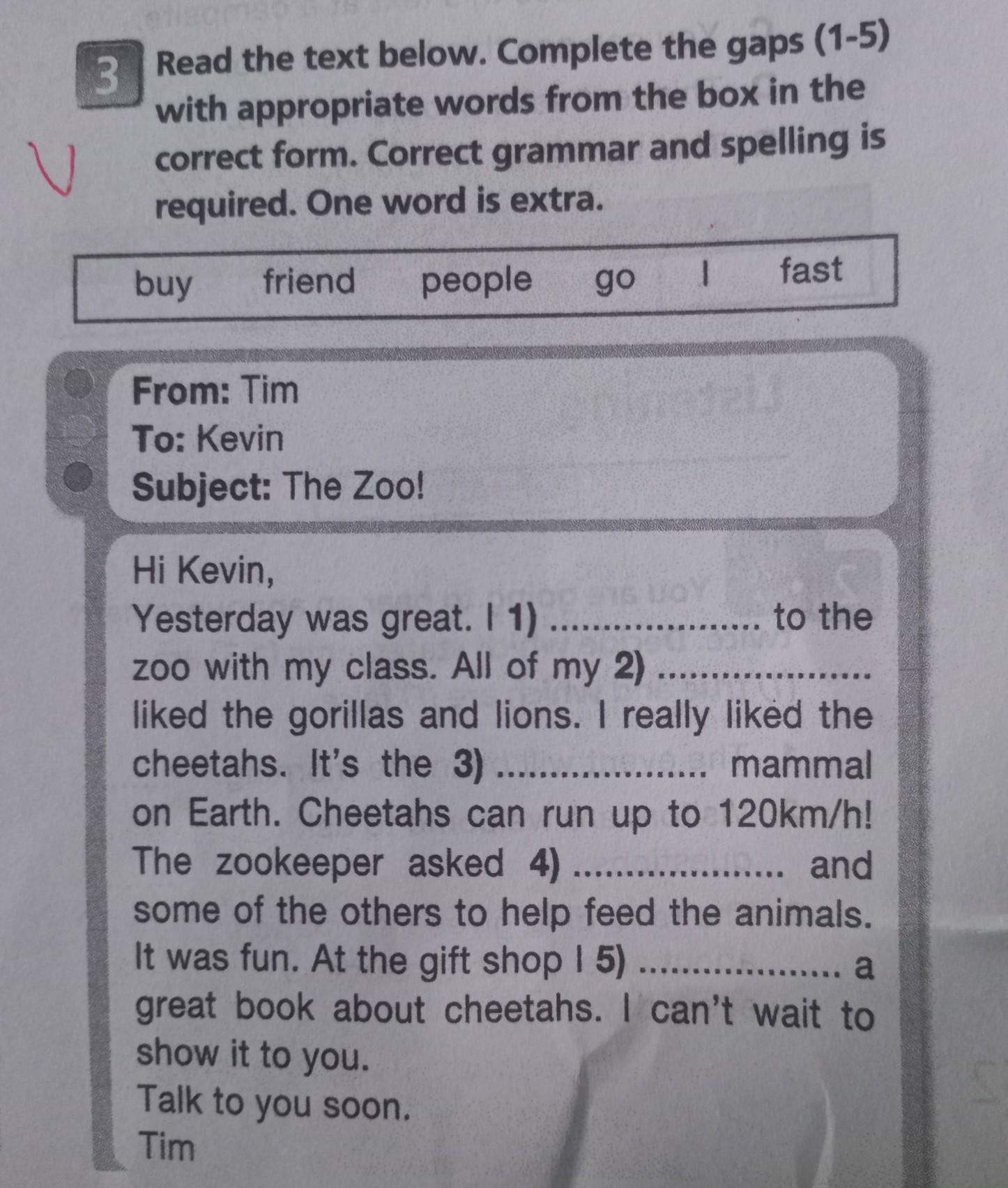 Yesterday was great. I 1) went to the zoo with my class. All of my 2) friends liked the gorillas and lions. I really liked the