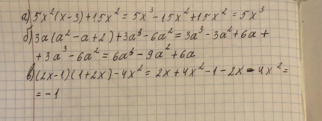а) 5х³; б) 3а(2а² - 3а + 2); в) -1