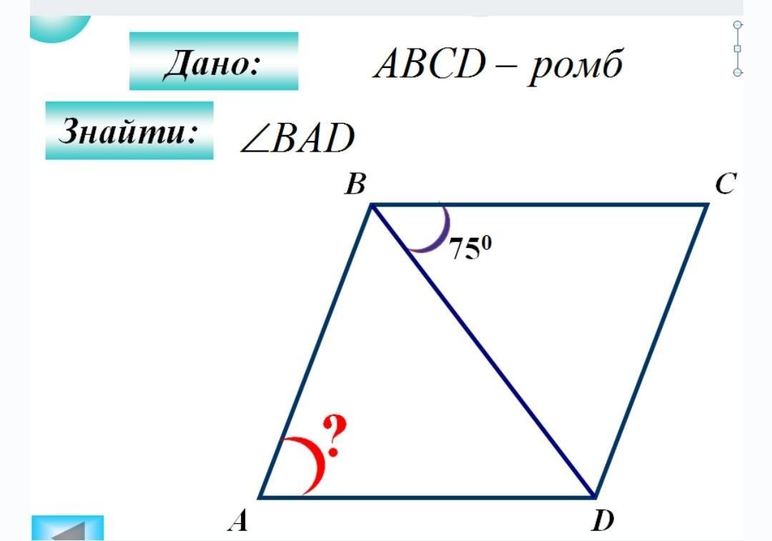 Так как это ромб, то диагональ ромба считается биссектрисой.