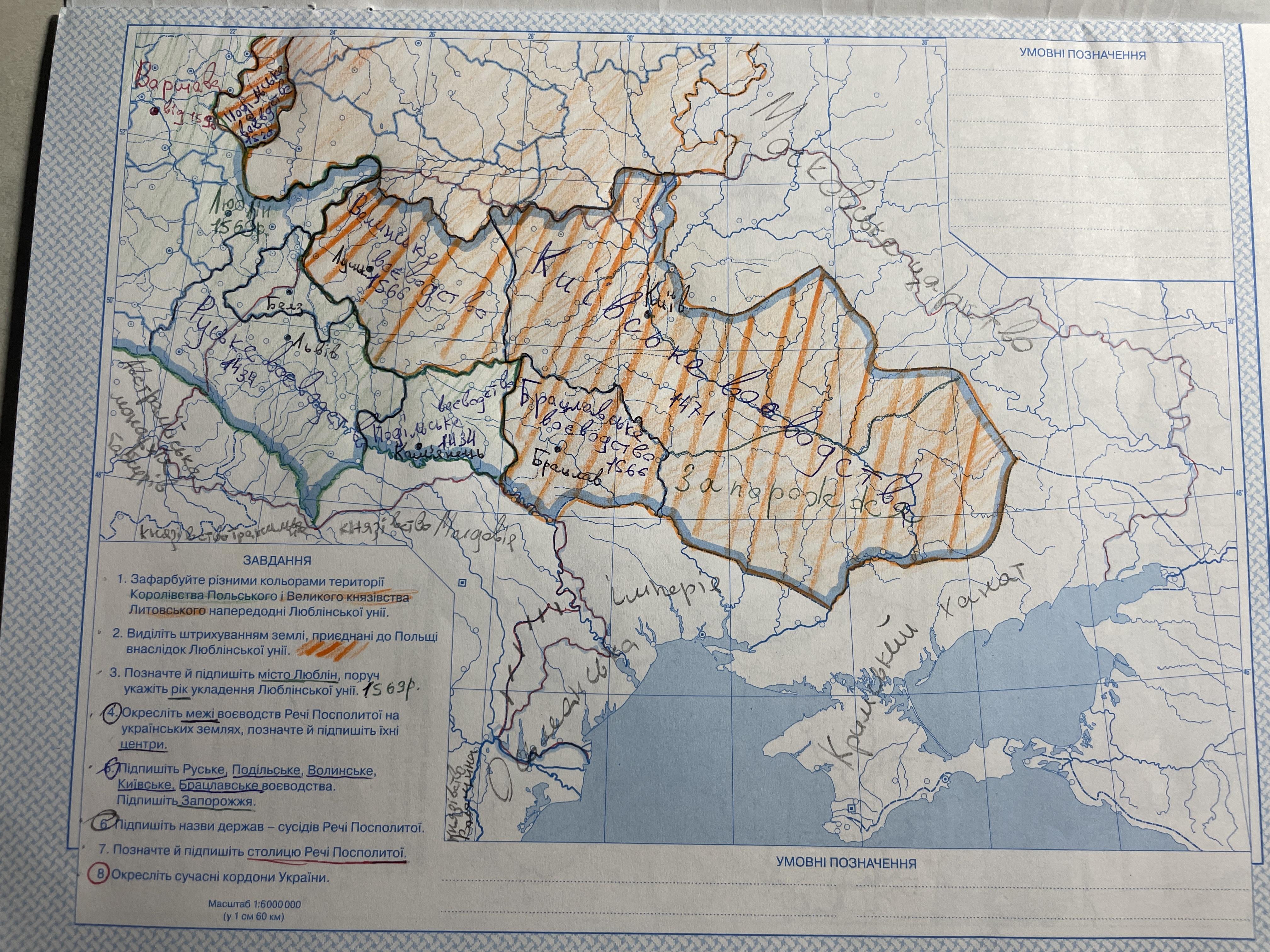 5. Підпишіть Руське, Подільське, Волинське, Київське, Брацлавське воєводства.