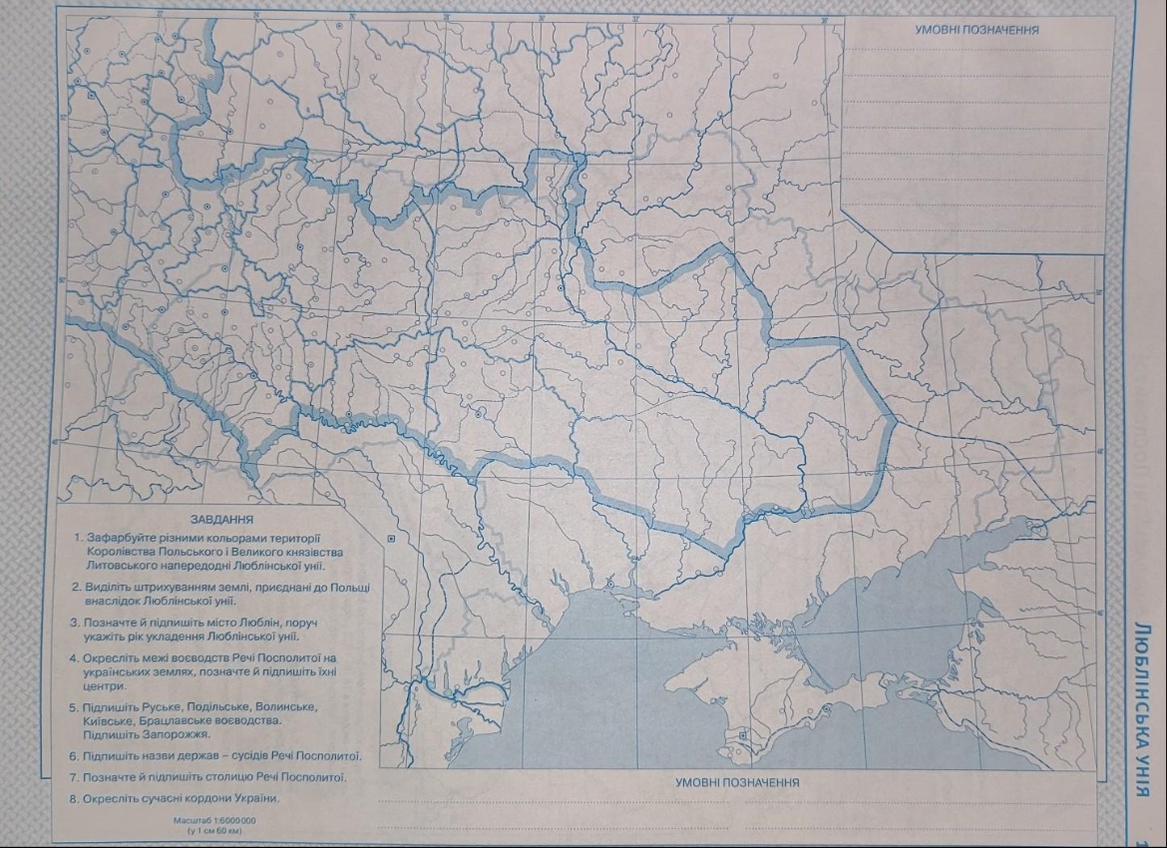 2. Виділіть штрихуванням землі, приєднані до Польщі внаслідок Люблінської унії.
