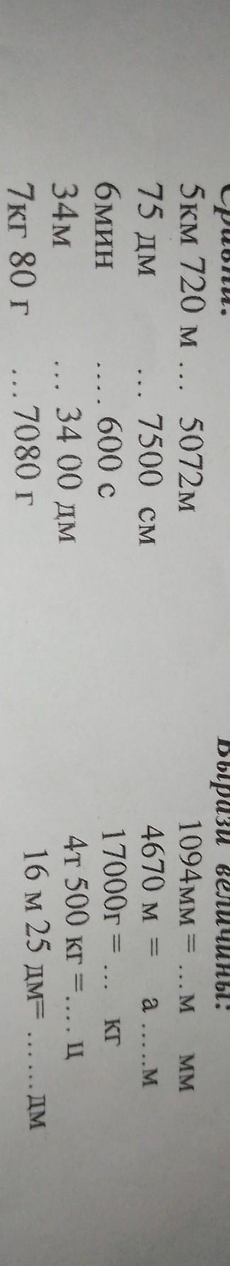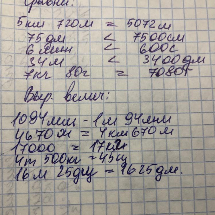 первый ответ правильный только 5км720м больше потому что 5км=5000+720=5720м.И в 2 последние не правильно ведь 1м=10дм 16м=160дм+25дм=185дм