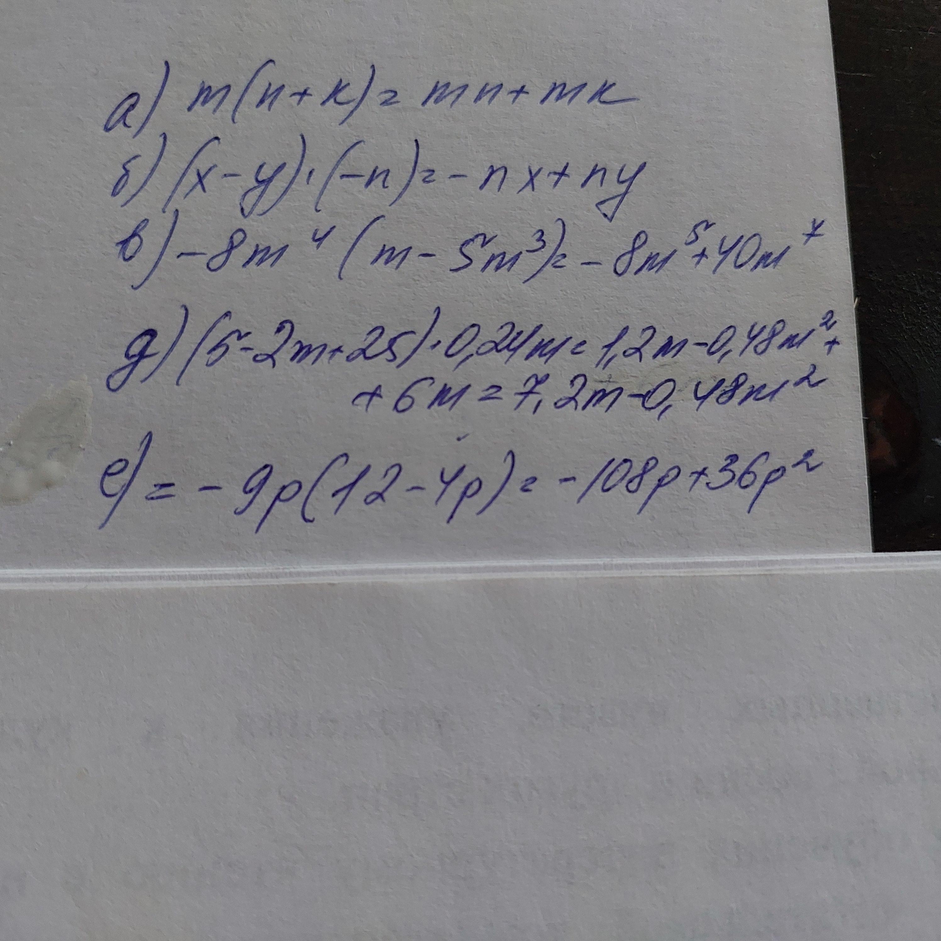 д) (5 - 2м + 25)· 0,24м;