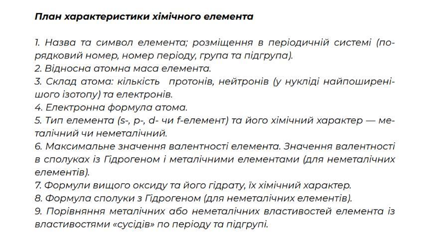 2. Оксиген O, VІ група,2 період,головна підгрупа,Ar = 16, протонів- 8,нейтронів- 8, електронів- 8, електронна формула -1s22s22p4, p-елемент, неметал, валентність ІІ, вищий оксид- не утворює, гідрат оксиду не утворює, летка сполука з Гідрогеном H2O, неметалічні властивості виражені сильніше ніж у Нітрогену та Сульфуру, пле слабше,ніж у Флуору