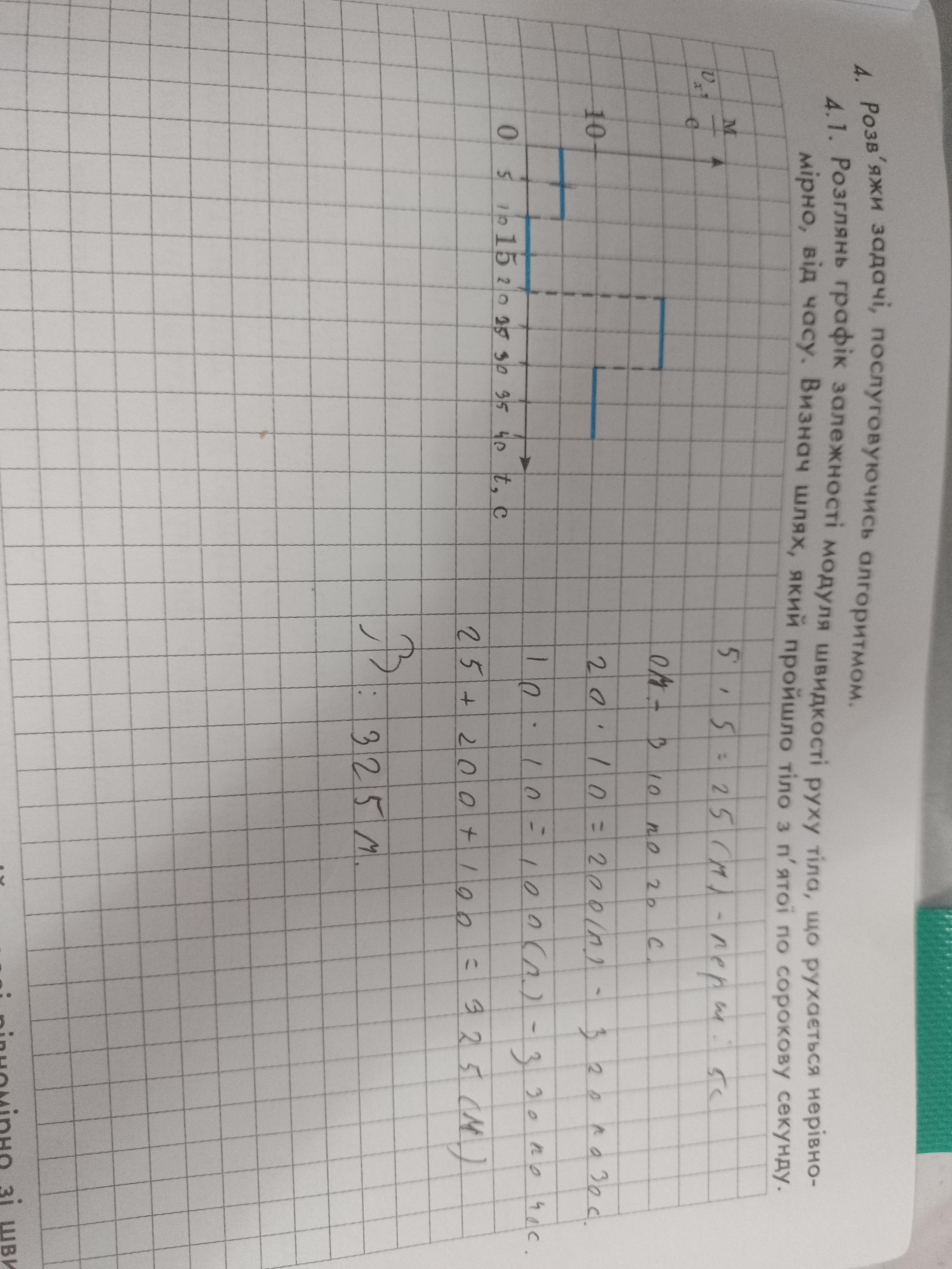 4.1. Розглянь графік залежності модуля швидкості руху тіла, що рухається нерiвно-