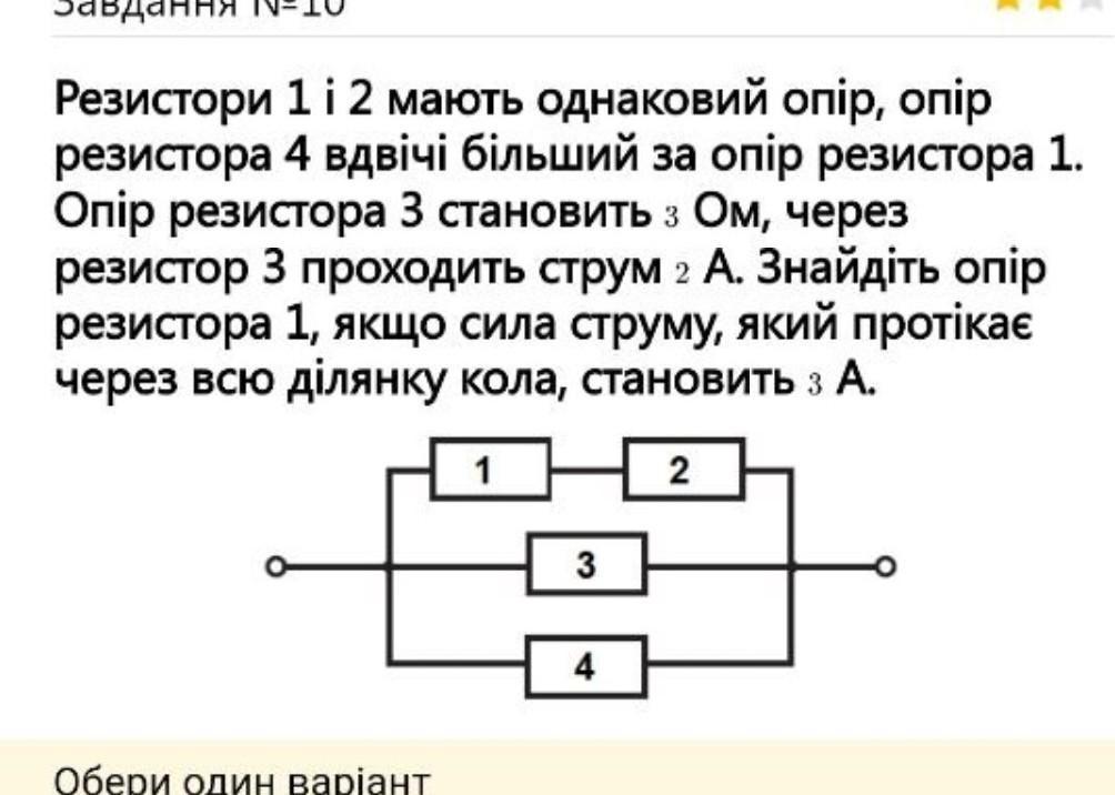 СРОЧНО!! ДАЮ 100 БАЛІВ!!! Резистори 1 і 2 мають однаковий опір, опір резистора 4 вдвічі більший за опір резистора 1. Опір резистора 3 становить з Ом, через резистор 3 проходить струм 2 А. Знайдіть опір резистора 1, якщо сила струму, який протікає через всю ділянку кола, становить 3 А.