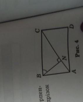 У прямокутнику ABCD на діагональ АС опущено перпендикуляр BN так, що кут NBC = 60°. Знайдіть відрізок CN, якщо AB=4 см.