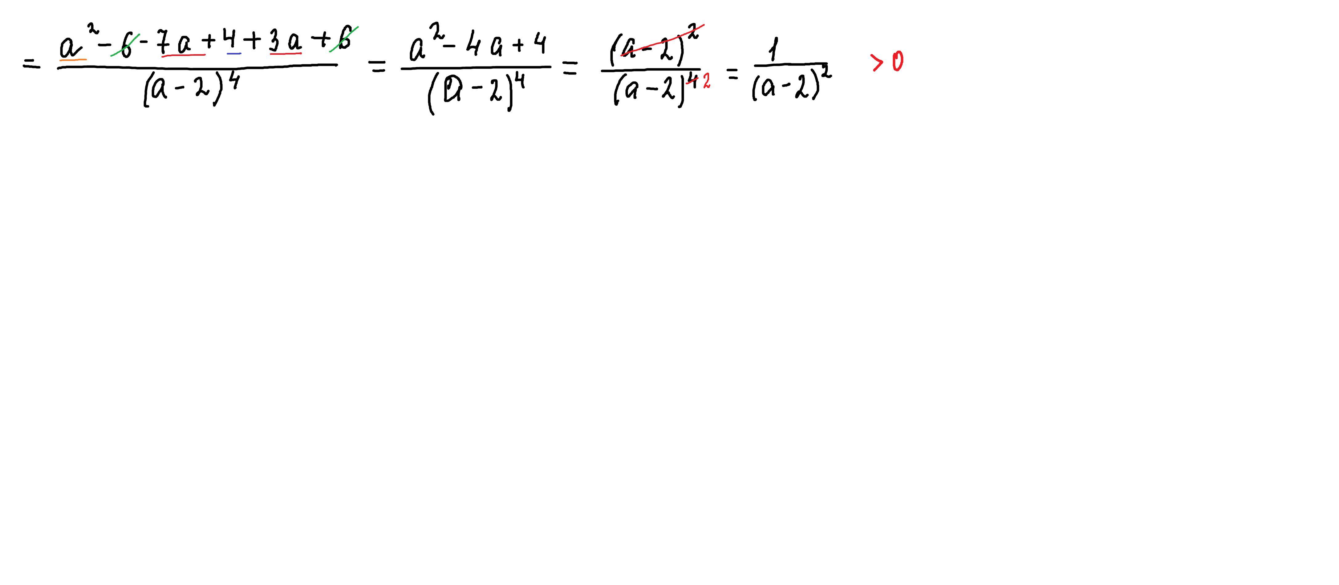 после упрощения получаем выражение,в знаменателе которого есть квадрат,а квадрат это положительное число.