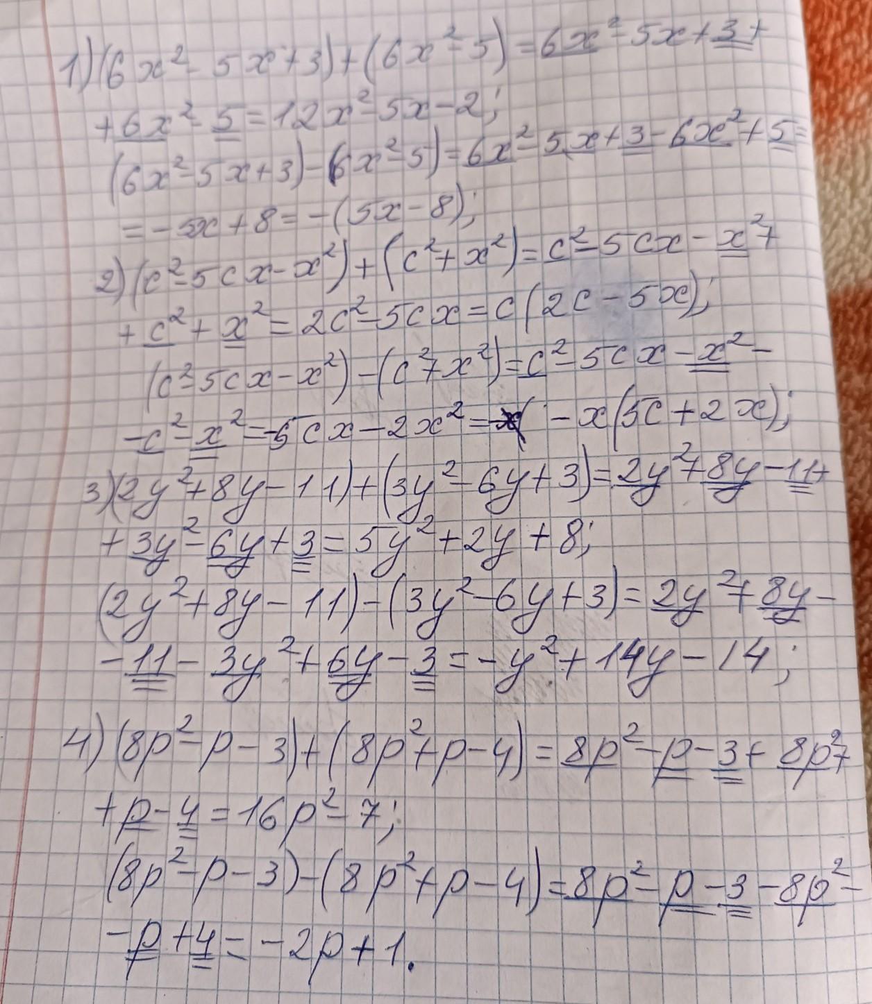 1. Складіть суму і різницю многочленів і приведіть до стандартного вигляду: