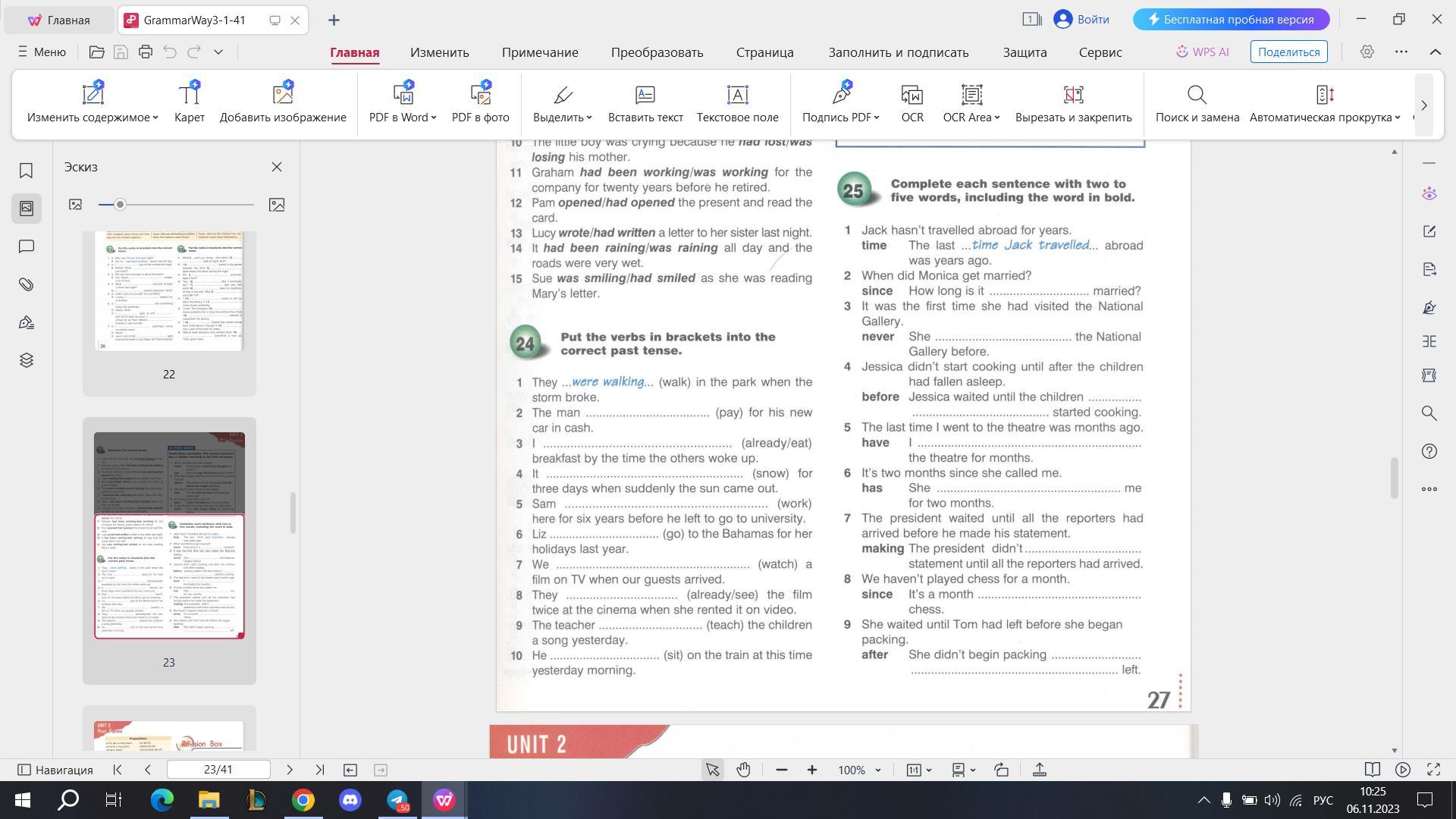 2.was paying 3.was already eating 4.was snowing 5.was working 6.was going 7.were watching 8.were already seeing 9.was teaching 10.was sitting