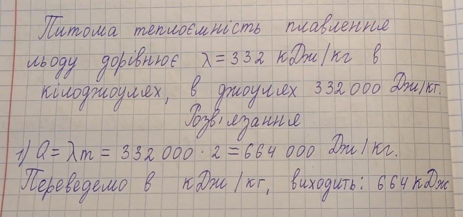 1)Q=λm=332000×2=664000 Дж/кг.