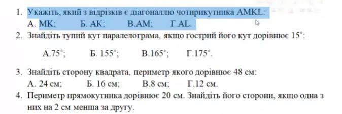 відповідь: 4 см, 4 см, 6 см, 6см.