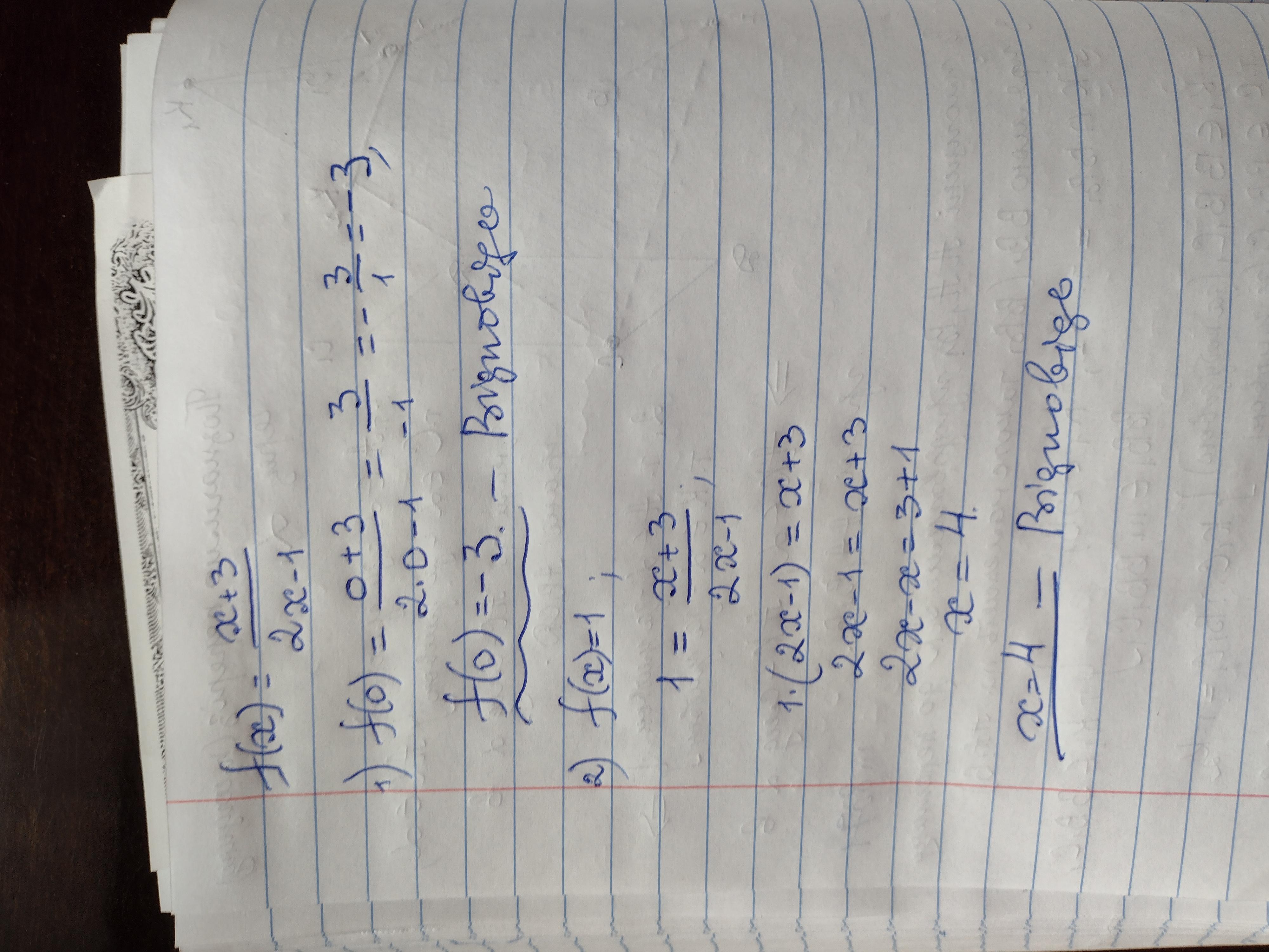 Функцію задано формулою f(x)=x+3/2x-1. Знайдіть: 1)f(0); 2) таке значения, при якому f(х)=1.