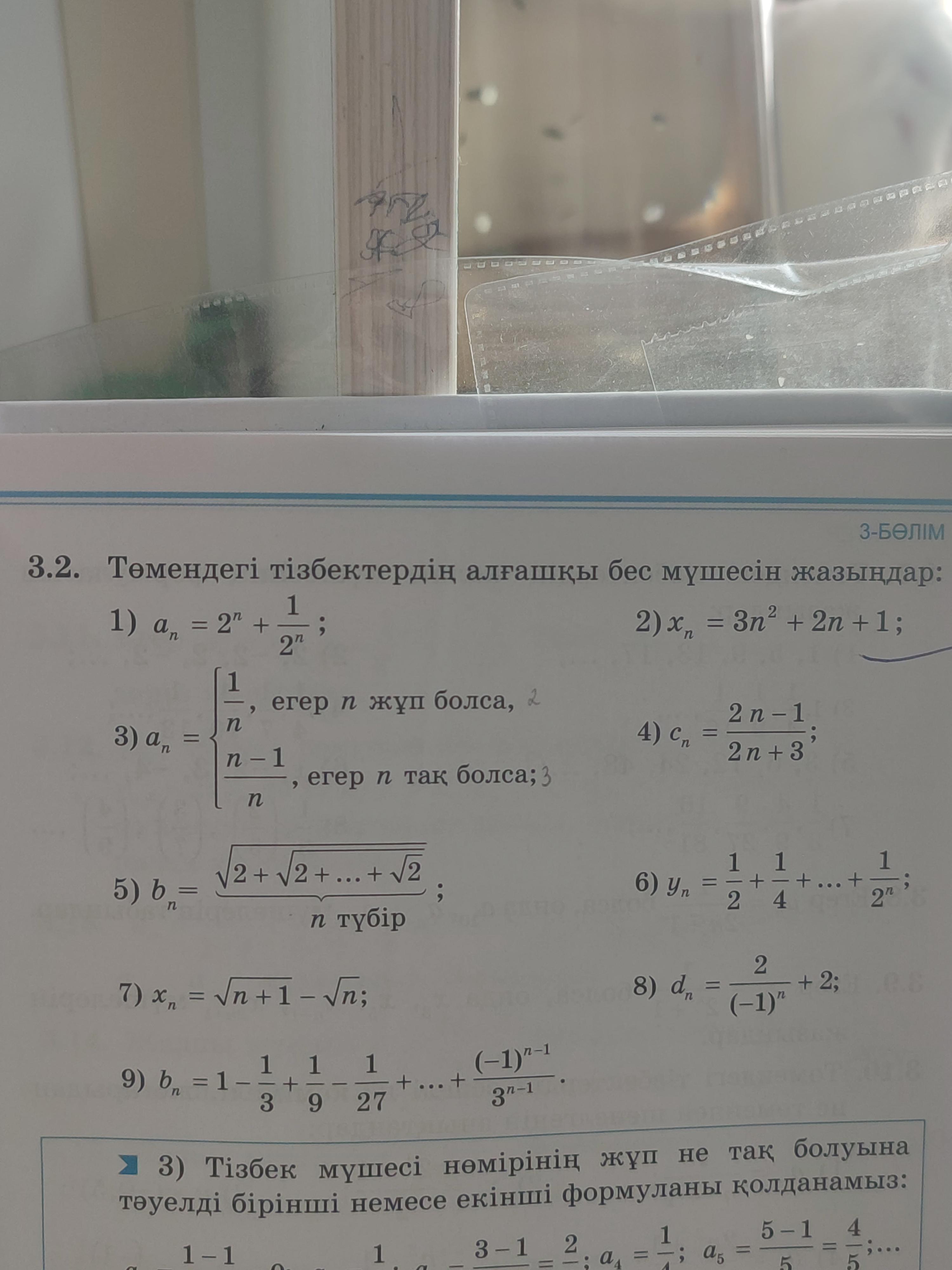 Срочно!!! 3.2. есеп төмендегі тізбектердің алғашқы бес мүшесін жазыңдар: