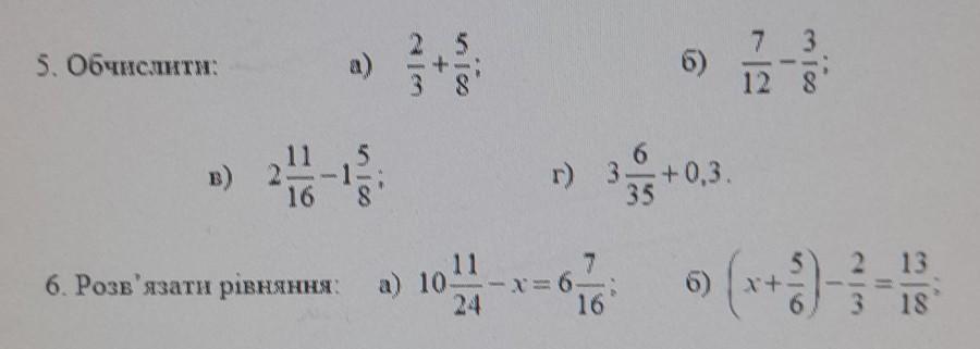 а) 2/3 + 5/8 = 16/24 + 15/24 = 31/24 = 1 7/24