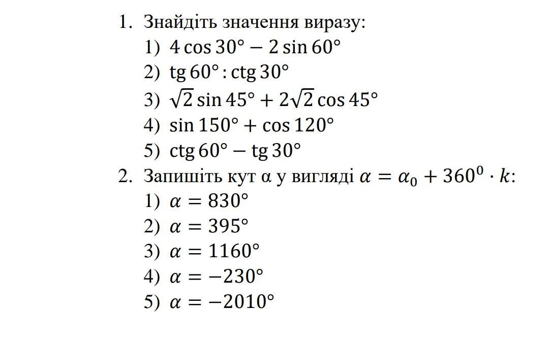 Пошаговое объяснение: див. розвязування у файлі нижче. Для розвязування першого завдання надо відкрити таблицю значень для тригонометричних функцій.