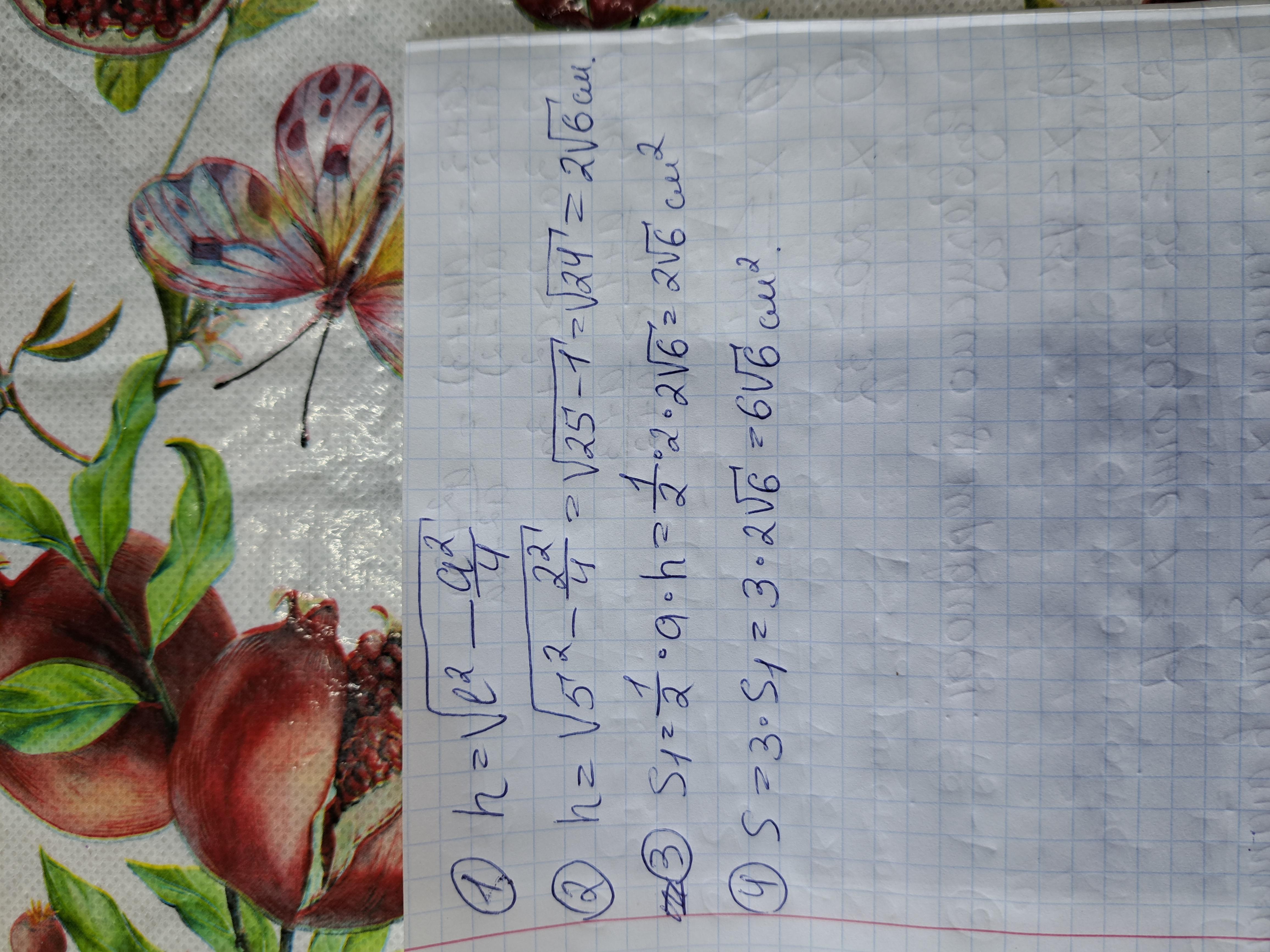 Сторона основи правильної трикутної піраміди дорівнює 2 см, а поферма 5 см знайти прощу бічної поверхні піраміди