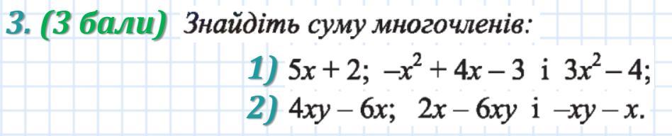 2) 4xy - 6x + (2x - 6xy) + (-xy - x) = 4xy - 6x + 2x - 6xy - xy - x = -3xy - 5x