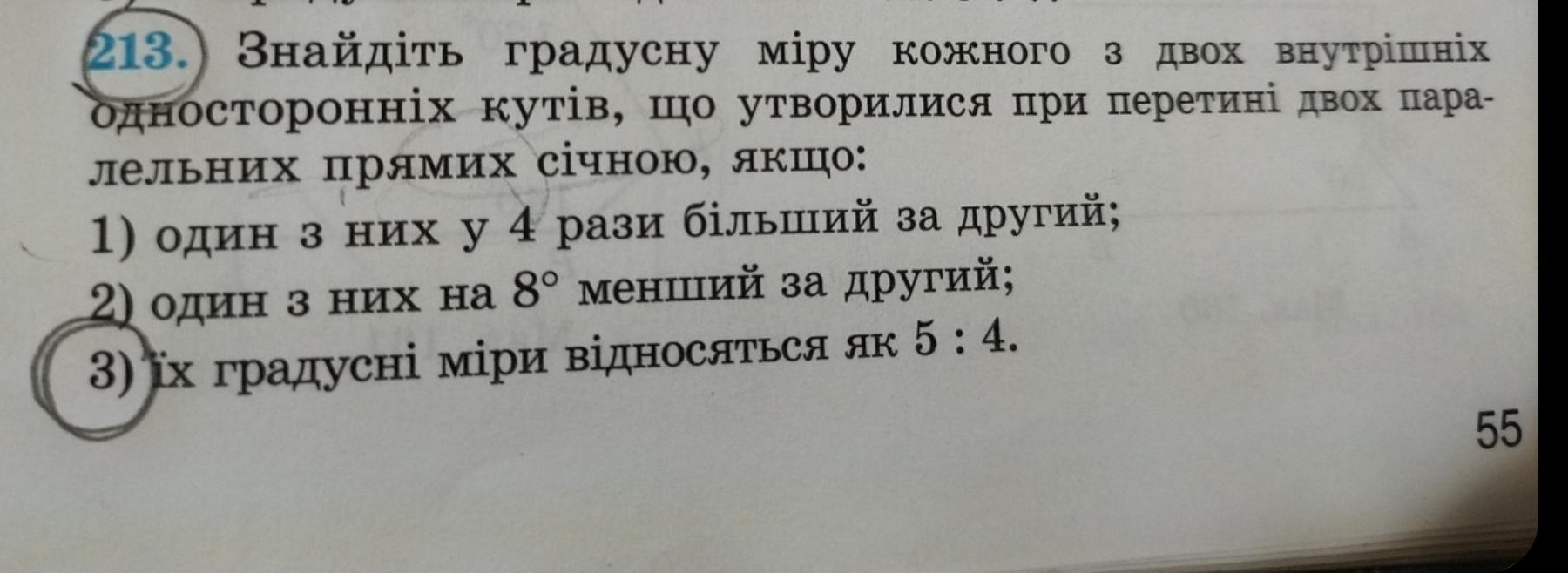 213) Внутренние односторонние углы в сумме составляют 180° .