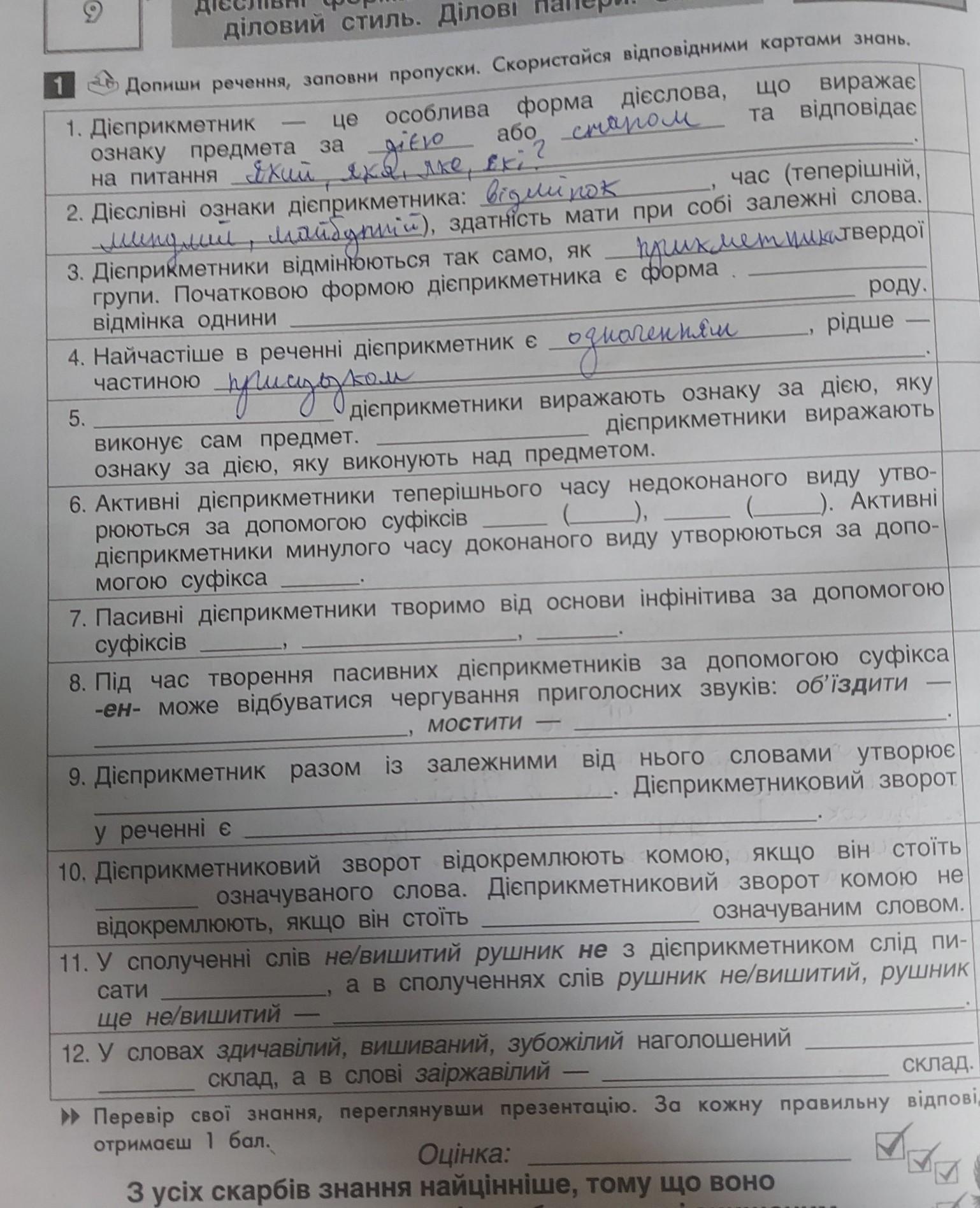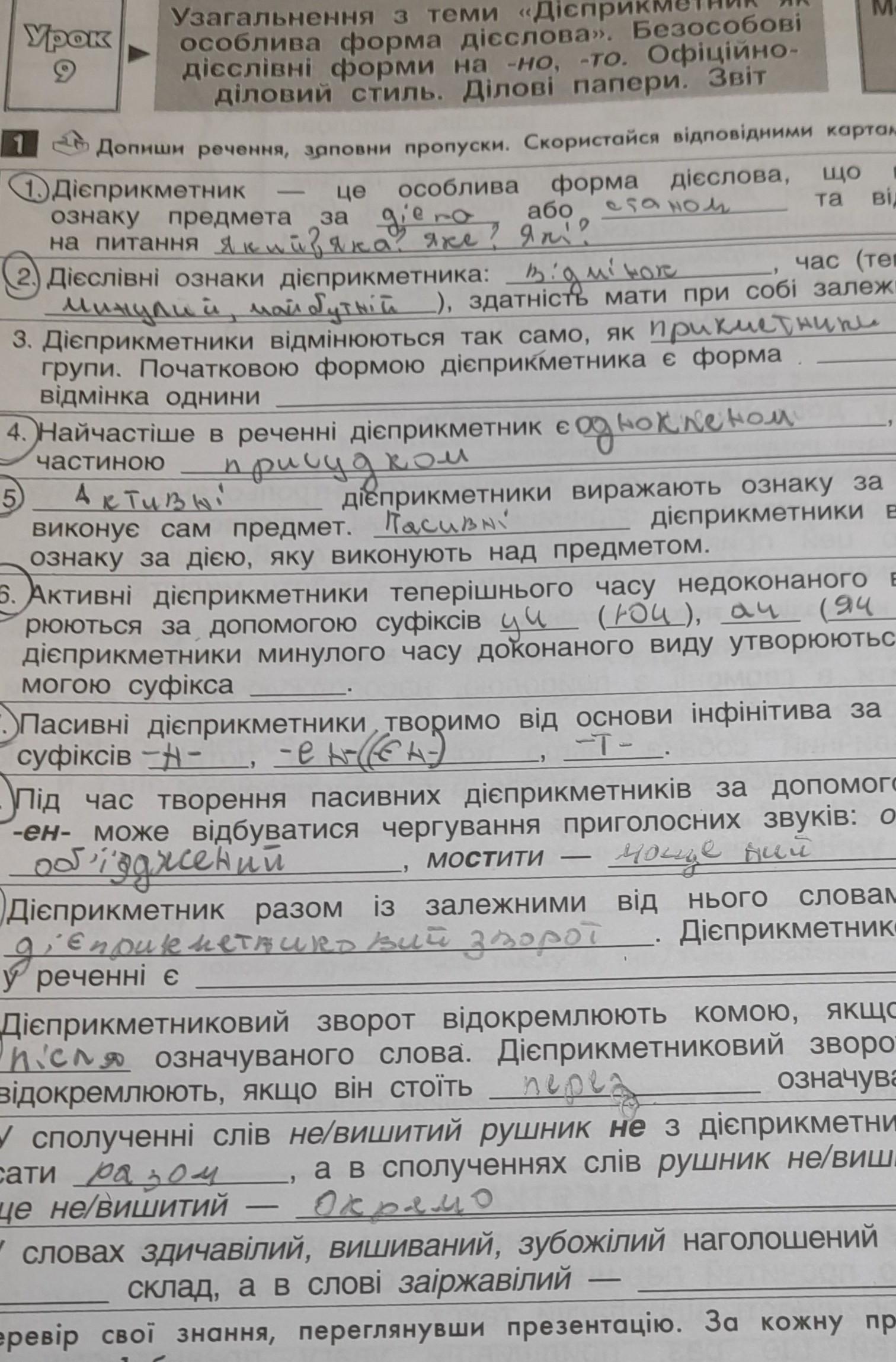 1 1. Дієприкметник Допиши речення, заповни пропуски. Скористайся відповідними картами знань. завдання на фото допоможіть бдлск