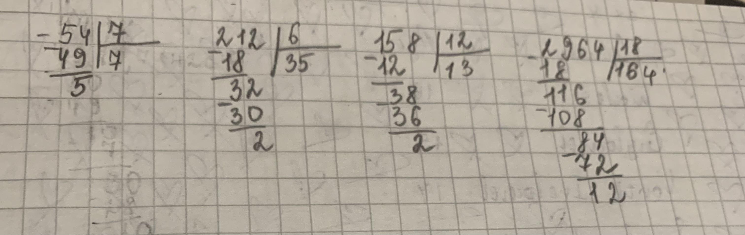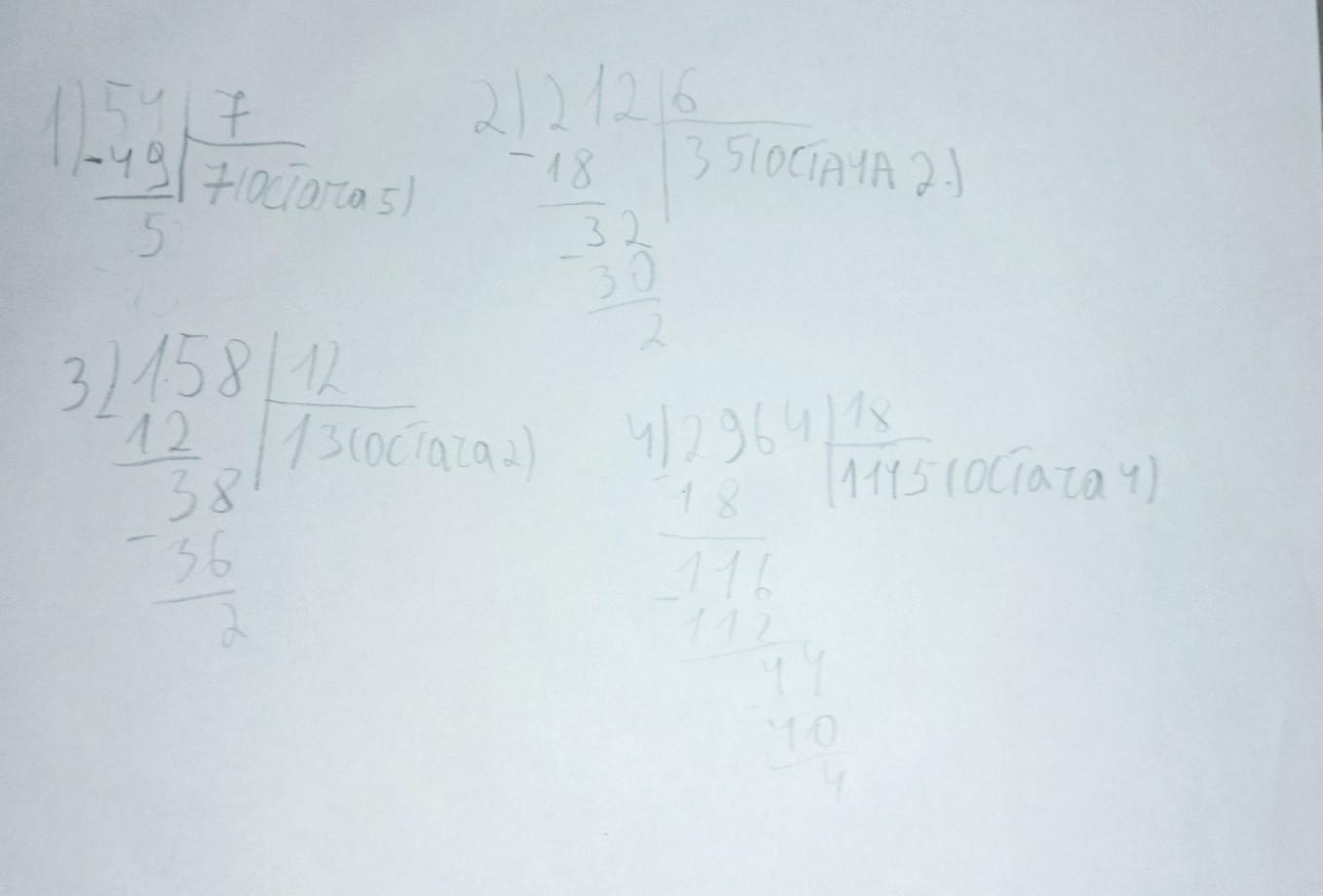 545. Виконайте ділення з остачею: 1) 54:7; 2) 212:6; 3) 158:12; 4) 2964: 18. ( желательно в столбик)