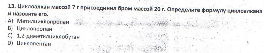 Циклоалкан массой 7 г присоединил бром массой 20 г. Определите формулу циклоалкана и назовите его