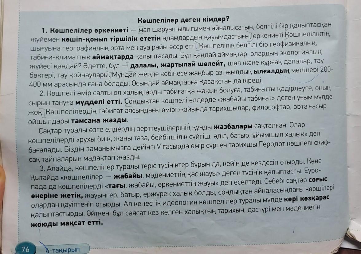 Ответ: 1 Көшпелілер өркениеті -кочевная цивилизация кошіп қонып тіршілік еткенін они были как кочевники