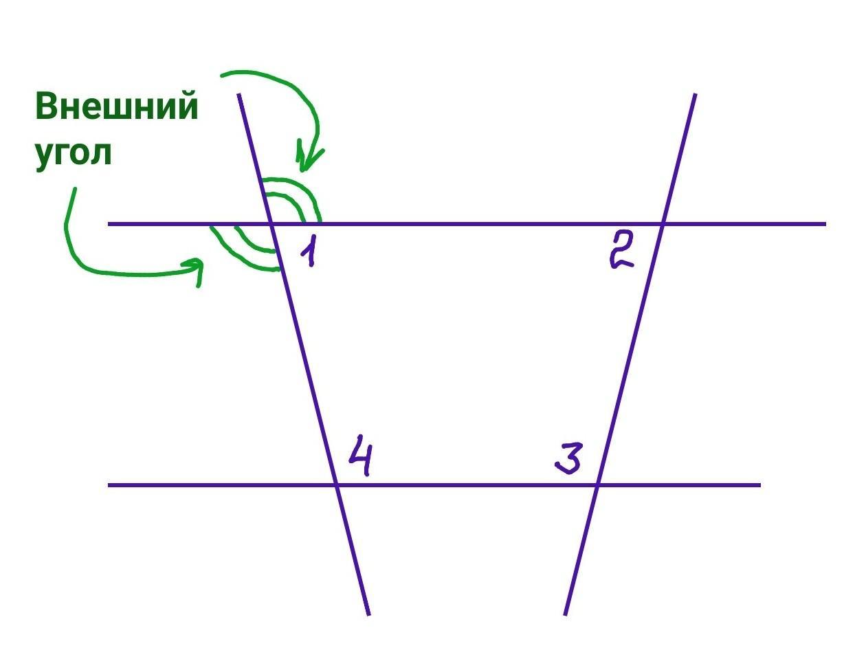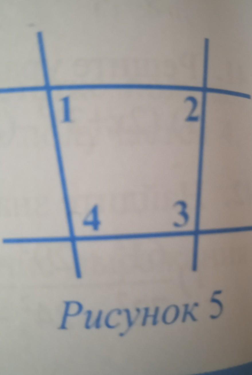 Четыре прямые попарно пересекаются (рисунок 5) Найдите сумму всех образованных внешних углов, при вершинах четырехугольника, если 1+2+3+4=360°.