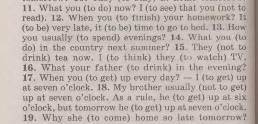 18. My brother usually doesn't get up at seven o'clock. As a rule, he gets up at six o'clock, but tomorrow he will get up at seven o'clock.