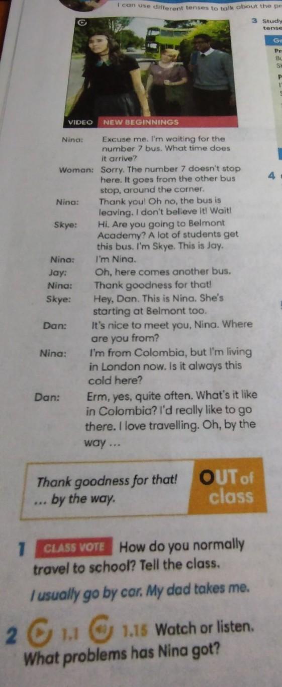 2)Nina does not know where the bus number 7 stops,she missed the bus.