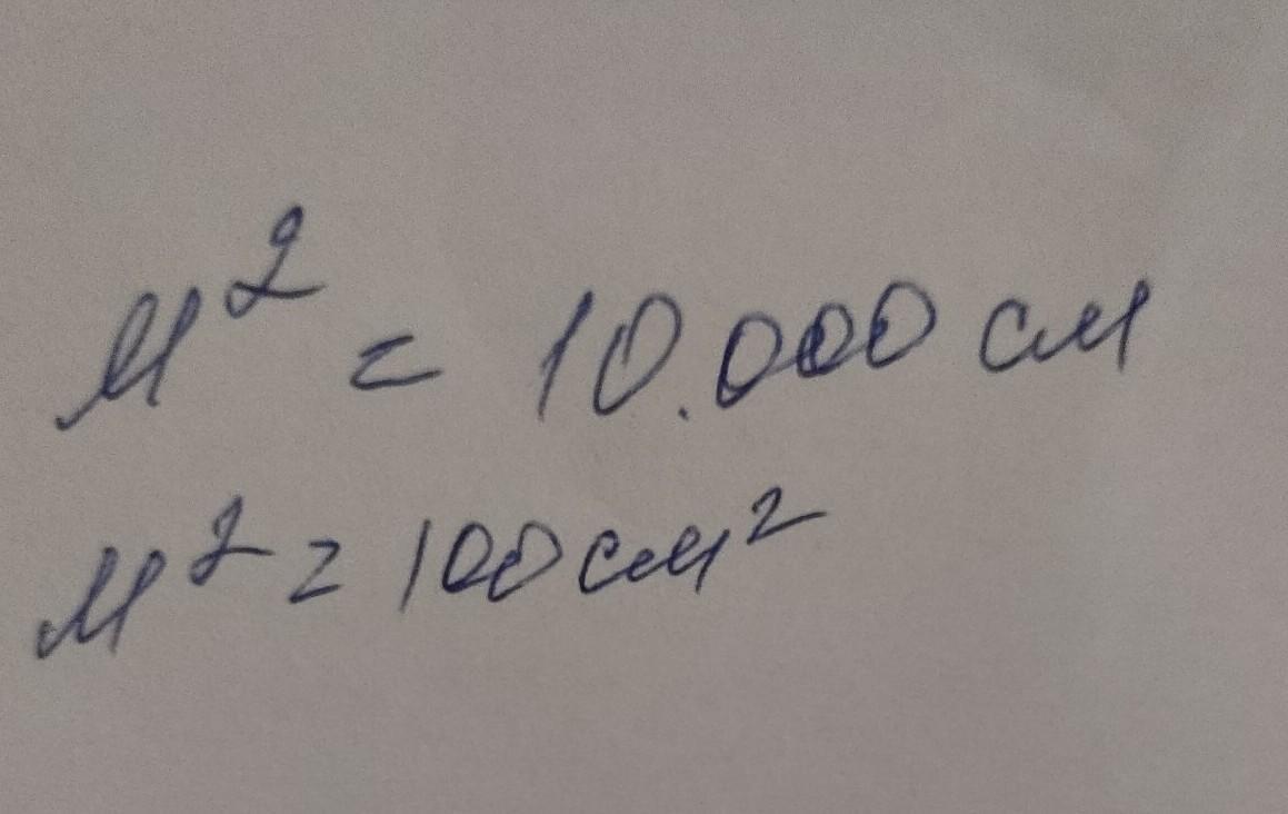 1 м это 100 см, метр в квадрате это 100 см в квадрате 100*100=10000