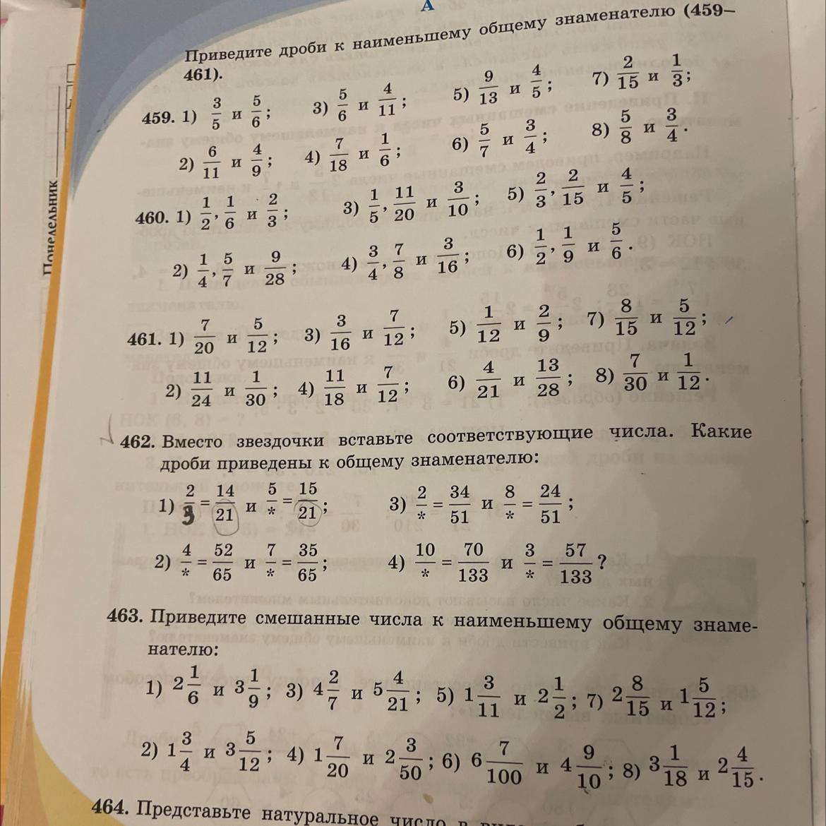 2) 4/5 = 52/65 (домножували на 13) и 7/13 = 35/65 (домножували на 5)