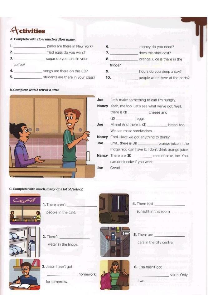 1 a little 2 a few 3 a little 4 a little 5 a few