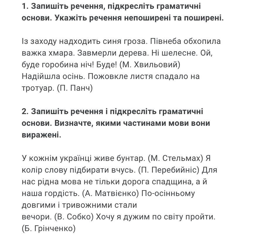 1. Із заходу надходить (присудок, дієслово) синя гроза (підмет, іменник). (поширене)
