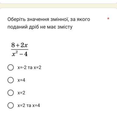 При х = -2; при х = 2 дробь не имеет смысла