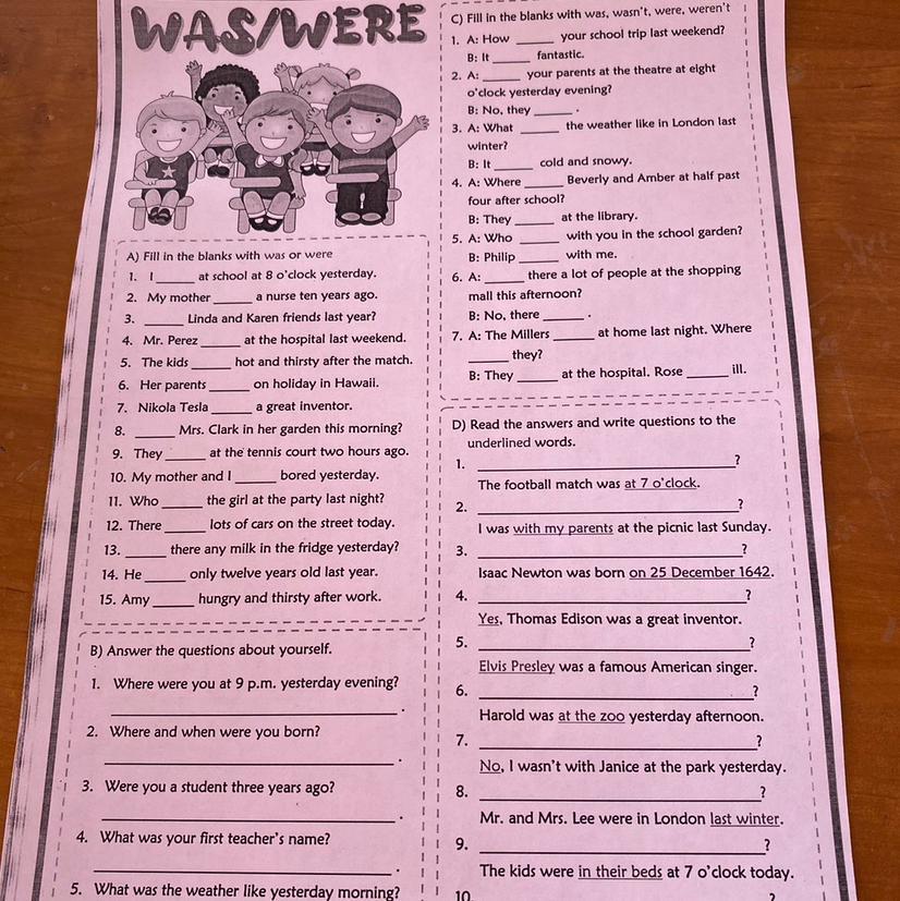 3. A: What were your parents at the theatre at eight o’clock yesterday evening?