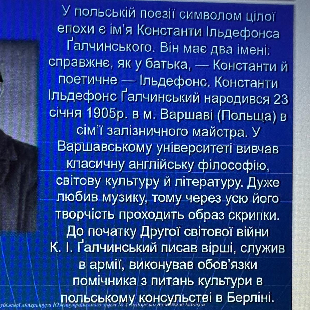 1.Скласти коротке змістовне повідомлення про Константа Галчинського.