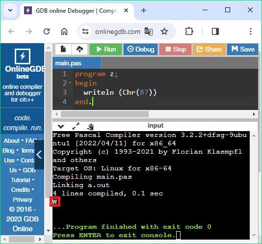 Подскажите пожалуйста ,что выводит оператор "chr" на языке Pascal?