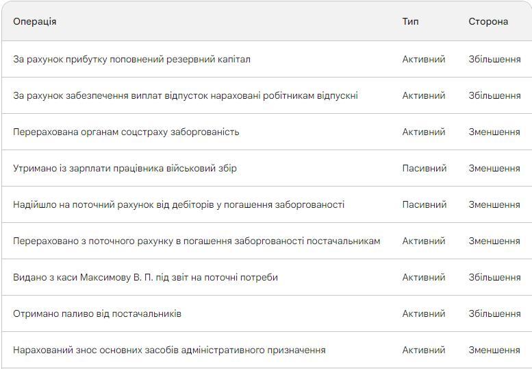 Визначити тип господарської операції: