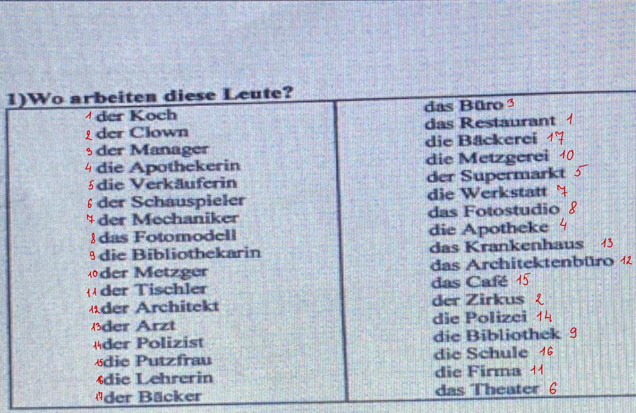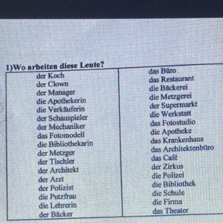 1)Wo arbeiten diese Leute?