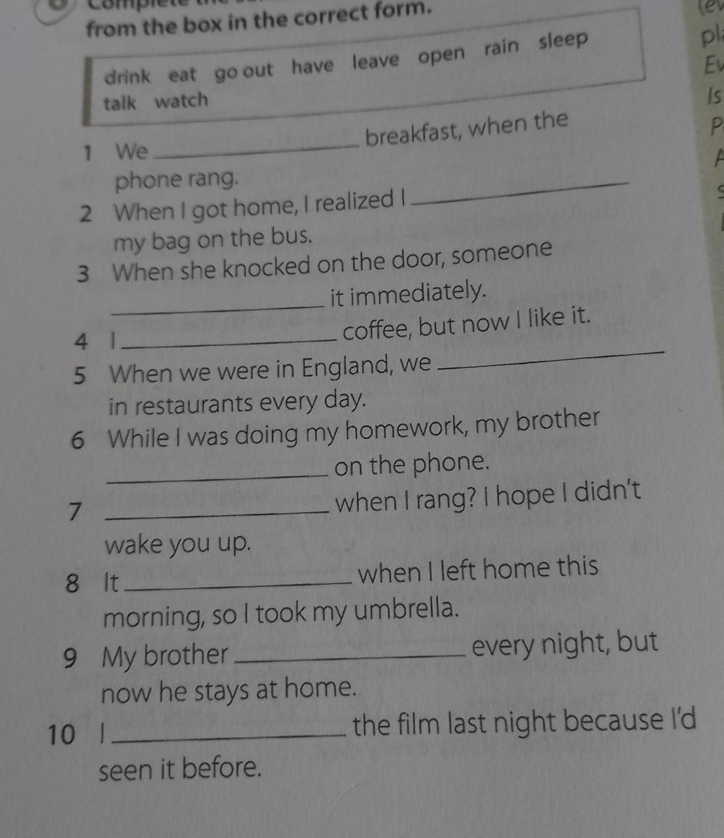 Complete the sentences (1-10) with the verbs from the box in the correct form.