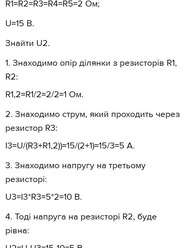 Знайдіть загальний опір з'єднання, якщо опір кожного резистора становить 2 Ом. Який струм протікає в резисторі R1, якщо напруга на затискачах кола 12 В?